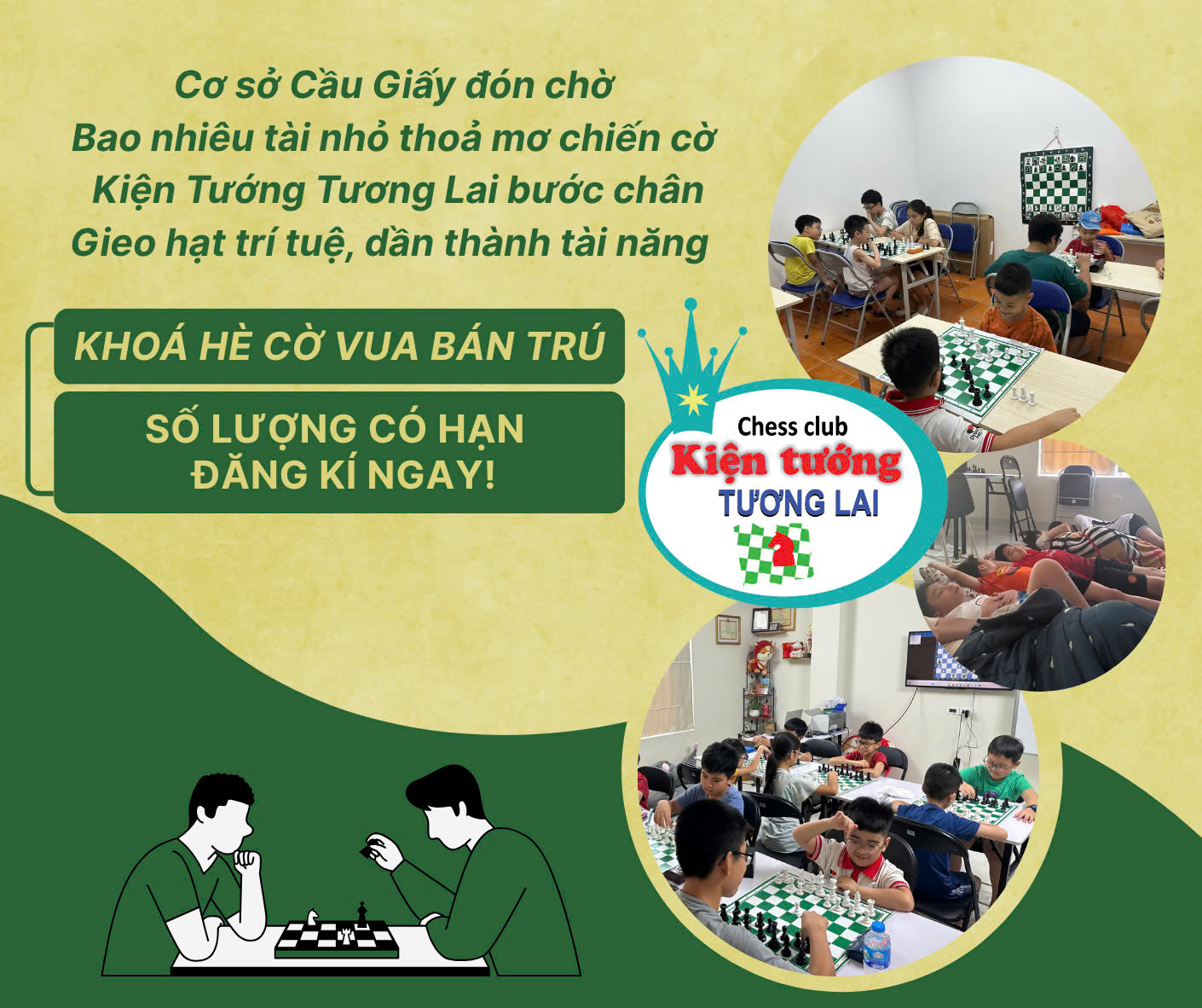 CLB CỜ VUA KIỆN TƯỚNG TƯƠNG LAI CƠ SỞ CẦU GIẤY chính thức mở đơn tuyển sinh chương trình HÈ 2025!
