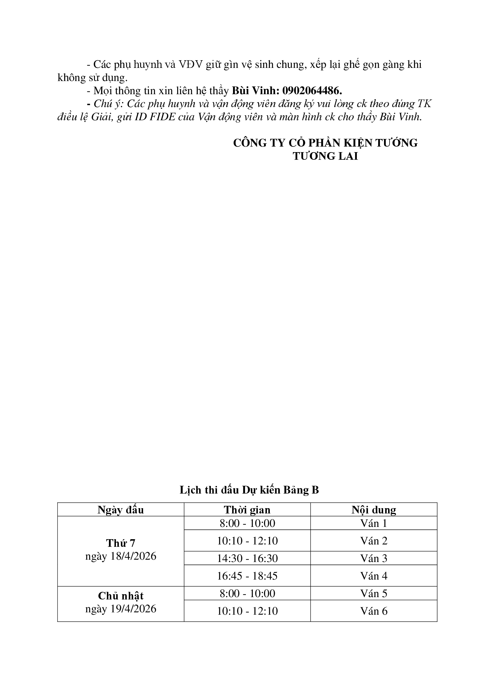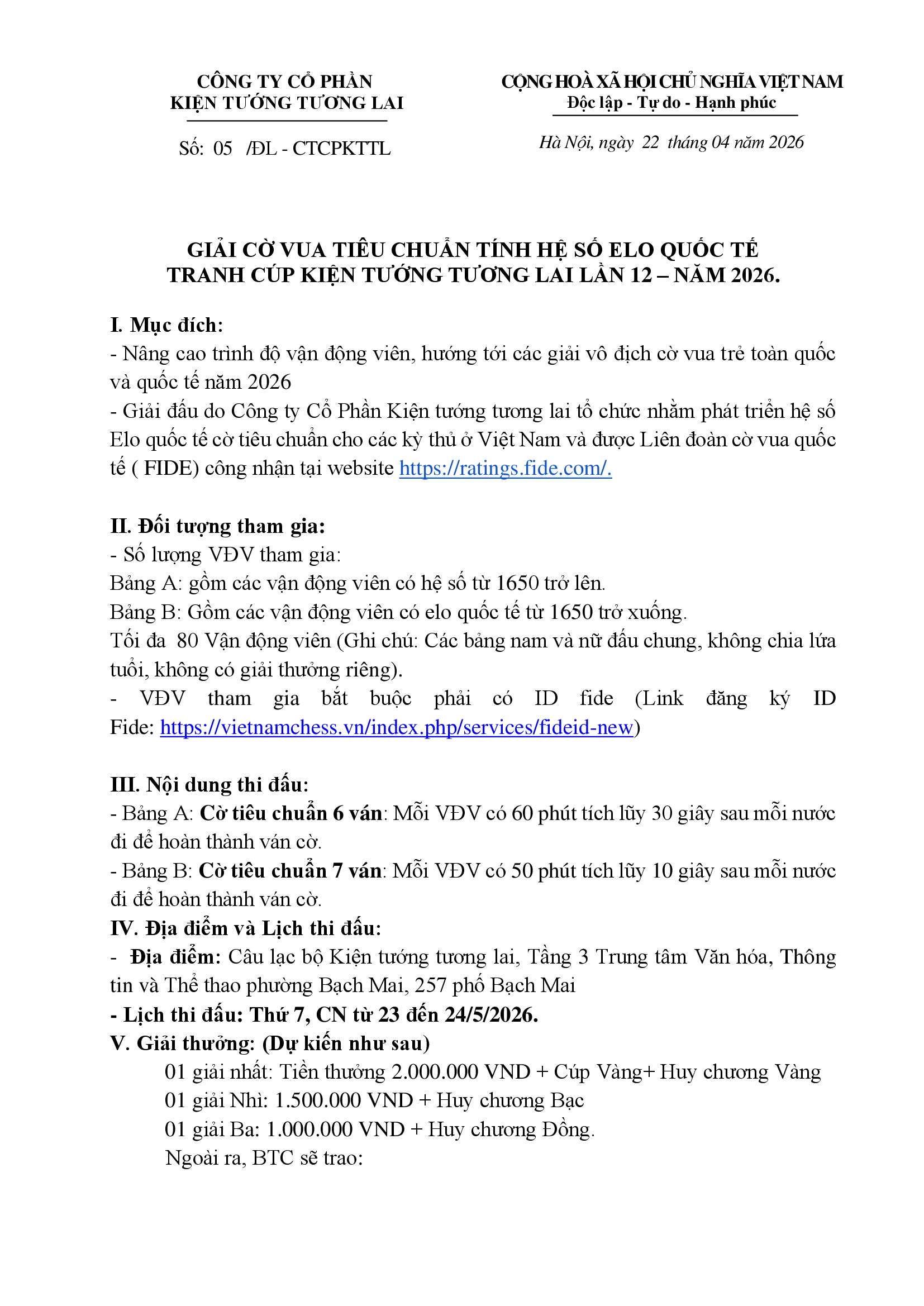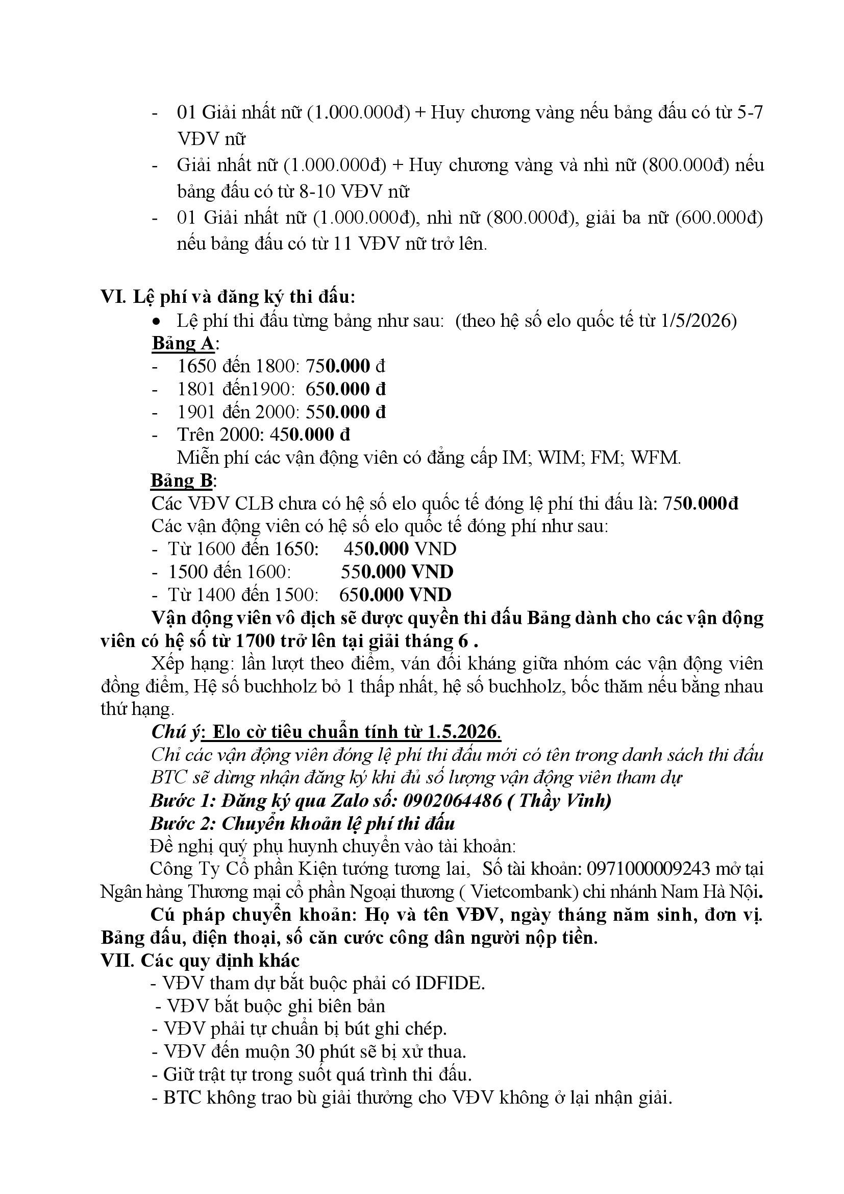 • Điều lệ – Lịch Thi Đấu Các Giải Đấu Cờ Vua CLB Kiện Tướng Tương Lai Trong Tháng 5 năm 2026