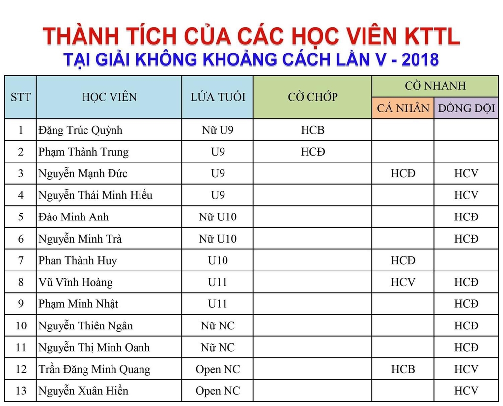 Xin chân thành cảm ơn câu lạc bộ cờ vua Kiện Tướng Hoa Phượng Đỏ – đơn vị tổ chức giải đã rất nỗ lực tạo một sân chơi bổ ích cho người yêu cờ, không phân biệt vùng miền, đẳng cấp, địa vị xã hội… đúng với tên gọi : “Không khoảng cách”!