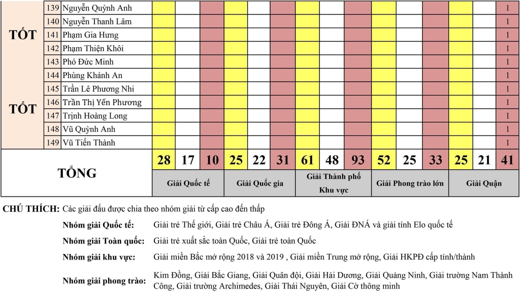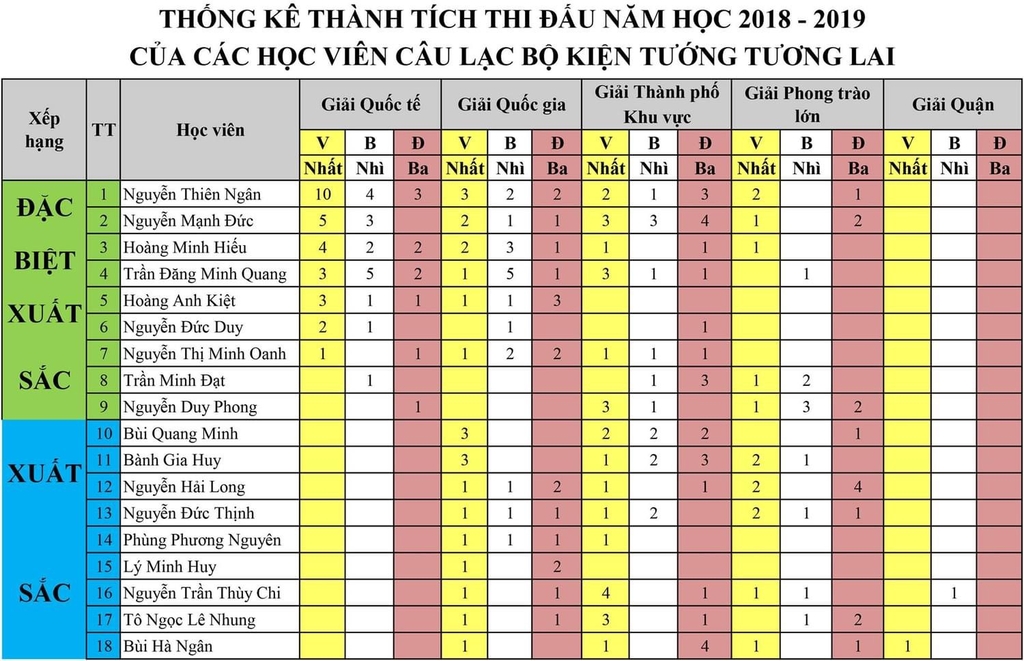 Thành tích đào tạo, Tin tức trong nước THỐNG KÊ THÀNH TÍCH THI ĐẤU CỦA HỌC VIÊN KIỆN TƯỚNG TƯƠNG LAI NĂM HỌC 2018 – 2019 THỐNG KÊ THÀNH TÍCH THI ĐẤU CỦA HỌC VIÊN KIỆN TƯỚNG TƯƠNG LAI NĂM HỌC 2018 – 2019