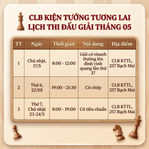 KẾ HOẠCH TỔ CHỨC HỆ THỐNG GIẢI ĐẤU CỜ VUA THÁNG 5 CỦA CÂU LẠC...
