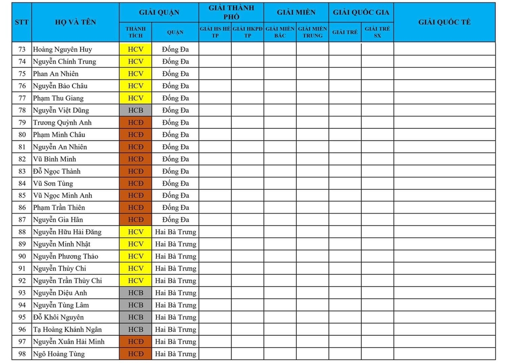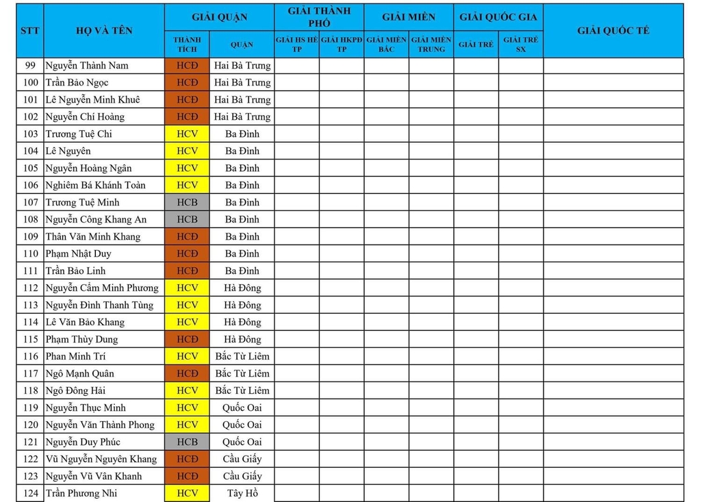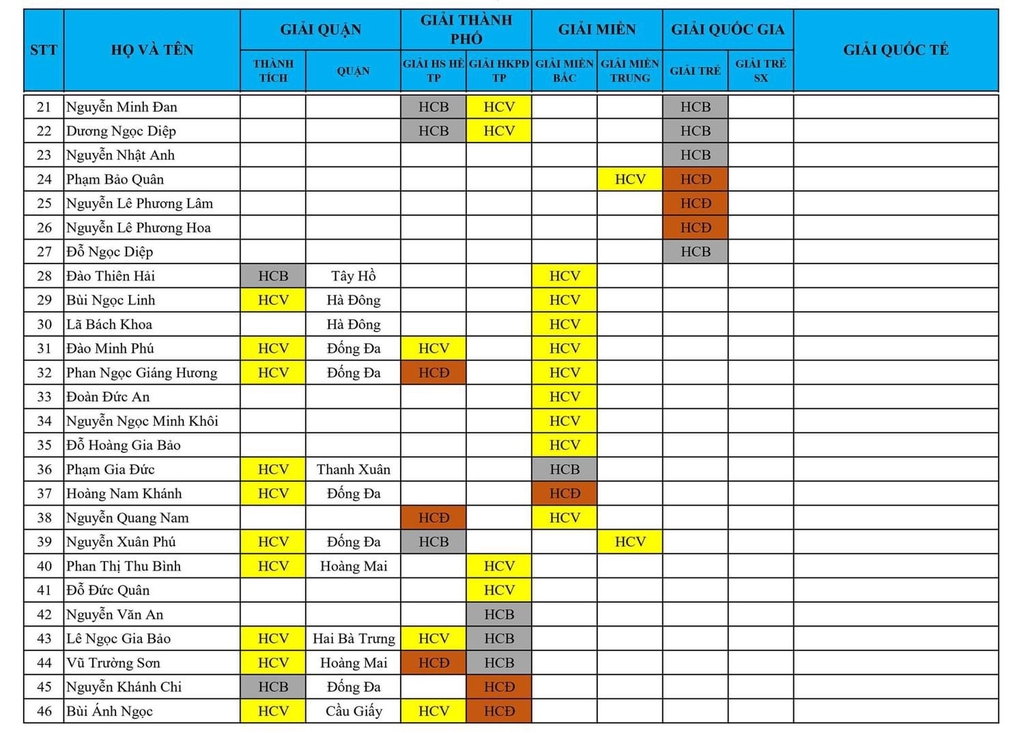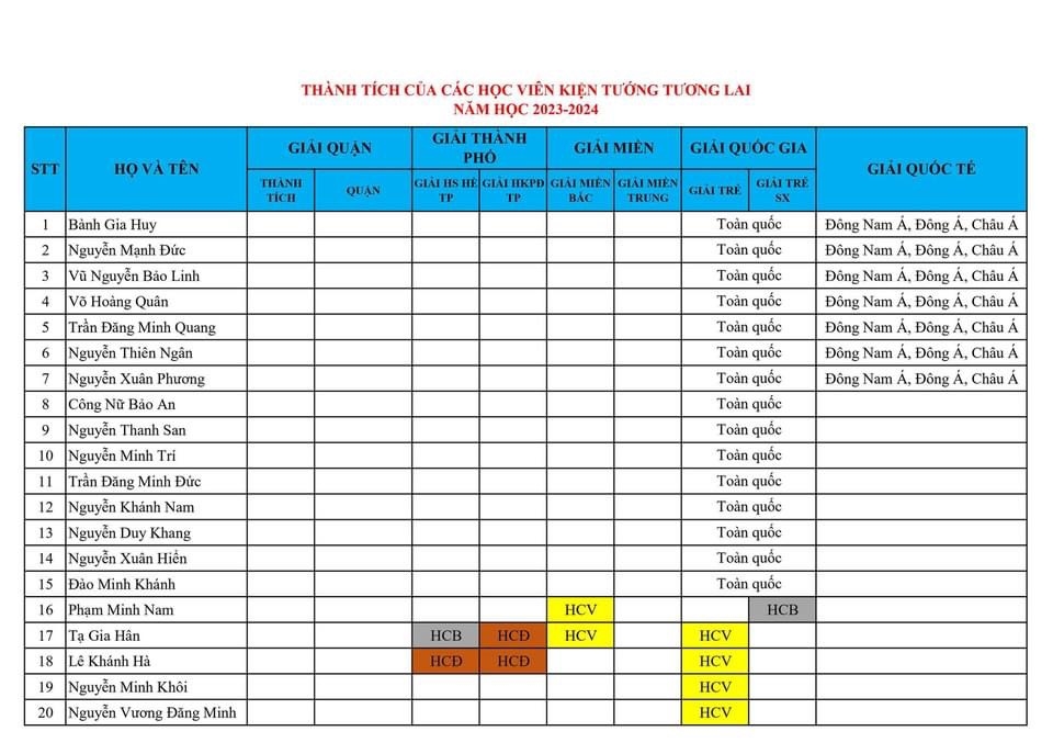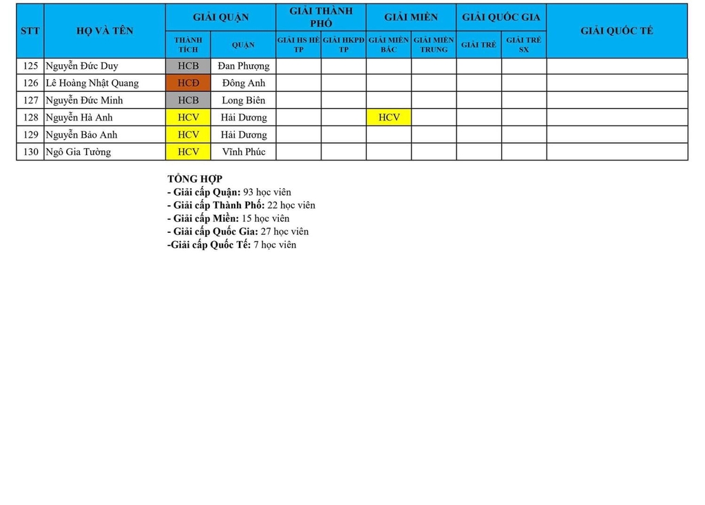 - 22 học viên đã vươn lên tầm cao mới khi giành chiến thắng tại các giải đấu cấp thành phố. Sự nỗ lực và kiên trì của các em đã được đền đáp xứng đáng, đồng thời khẳng định vị thế của CLB trên đấu trường thành phố.